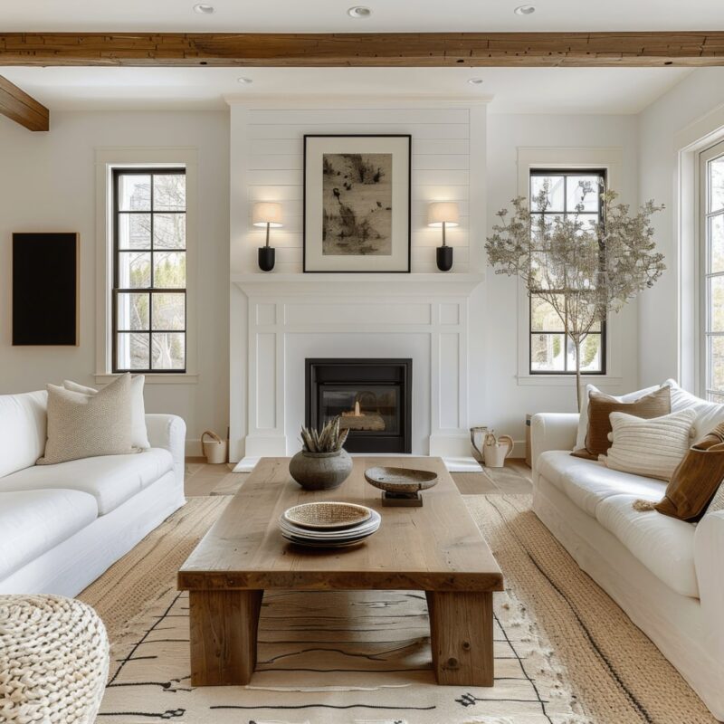 Stick to warm neutrals like soft whites, creams, and muted greys as a base, then layer in contemporary accents through furnishings and accessories.